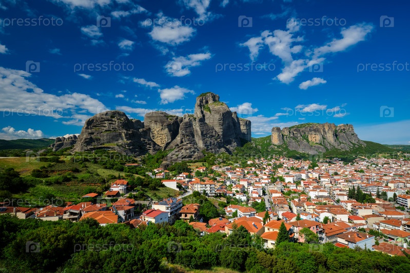 Вид на деревню Калампака в знаменитом греческом туристическом направлении Метеора в Греции