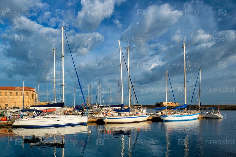 Яхты и лодки в живописном древнем порту Хании, Крит