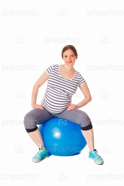 Беременная женщина делает упражнения с мячом