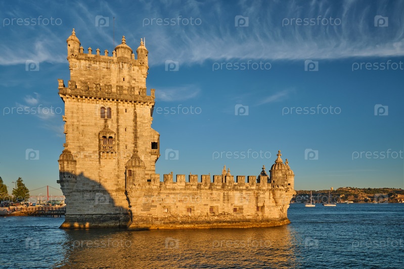 Башня Белема или башня Святого Винсента является известной туристической достопримечательностью Лиссабона и туристической достопримечательностью - на берегу реки Таго при закате солнца