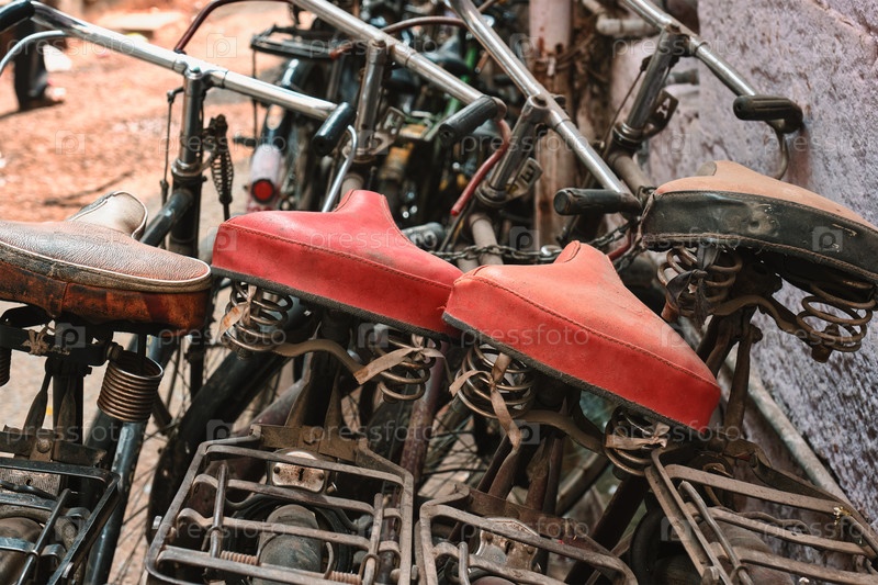 Велосипедные седла закрываются на индийской улице
