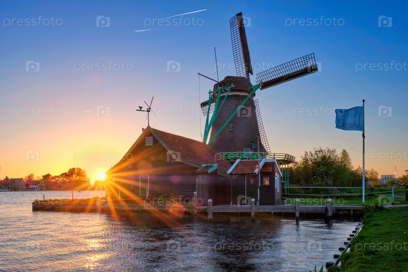 Ветряные мельницы в Заансе-Шанс в Голландии на закате
