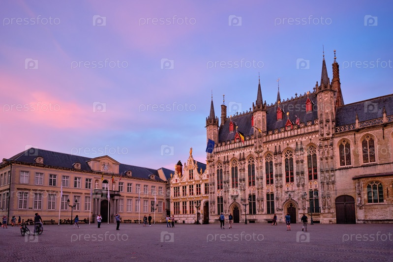 Городская ратуша города Брюгге Stadsbestuur в городе Брюгге, Бельгия вечером