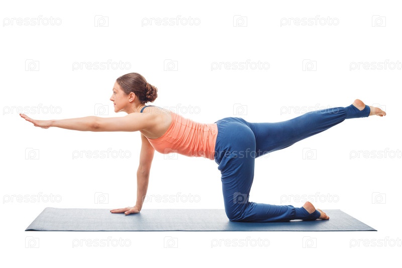 Женщина, выполняющая хата-йогу в изоляции на белом фоне