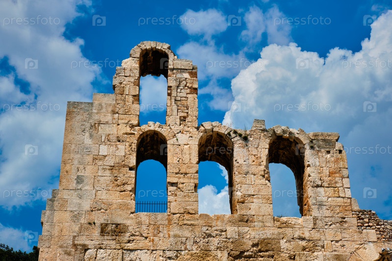 Руины Одеона Ирода Аттика - это древний римский каменный театр, расположенный на юго-западном склоне холма Акрополя в Афинах, Греция