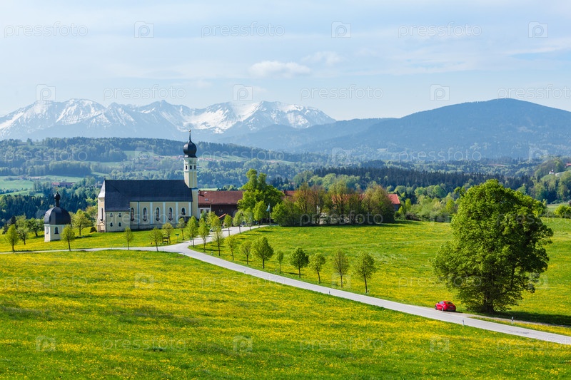 Biew from Bavaria Country Scene - Паломническая церковь Уилпартинга, деревня Иршенберг, Верхняя Бавария, Германия