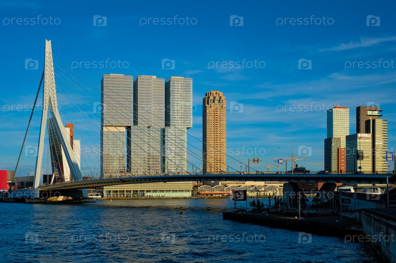 Роттердамские небоскребы и мост Эразмуса через реку Ниуэ Маас