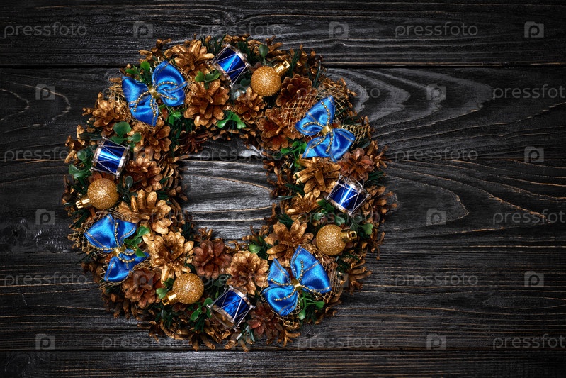 Рождественский венок на темном деревянном фоне