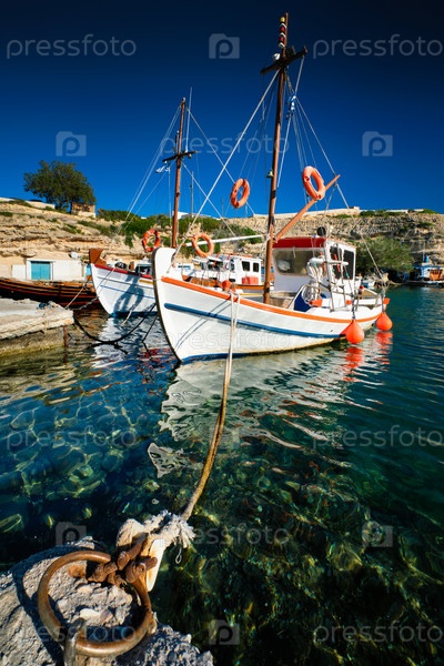 Рыболовные лодки в гавани рыбацкой деревни Мандракия, остров Милос, Греция
