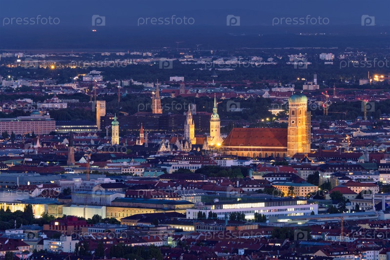 Ночной вид Мюнхена с Олимпийской башни.Мюнхен, Бавария, Германия