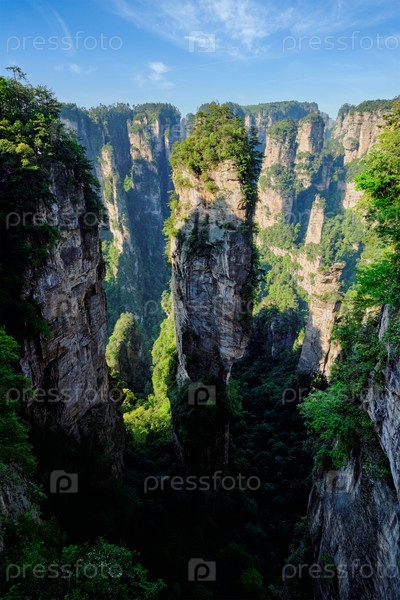 Известная туристическая достопримечательность Китая - гора Аватар Аллилуйя в Чжанцзянджи Каменные столбы горной скалы на закате солнца во Вулингюане, провинция Хунань, Китай