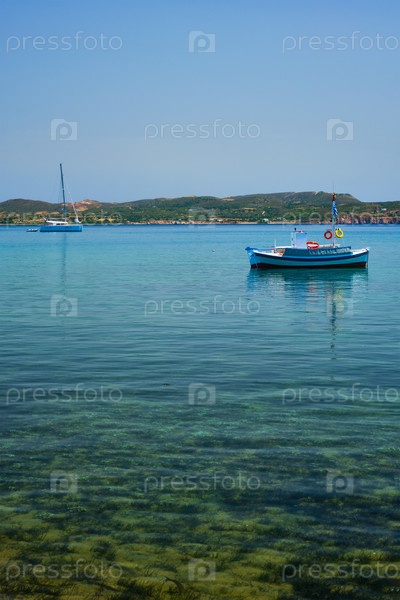 Греческая рыбацкая лодка в Эгейском море недалеко от острова Милос, Греция