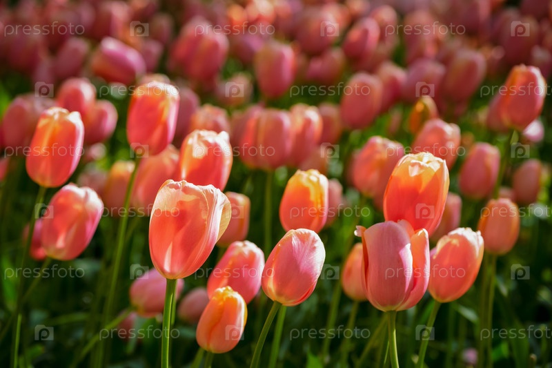 Цветящие розовые тюльпаны в цветочном саду Кеукенхофа, одном из крупнейших цветочных садов мира и популярной туристической достопримечательностью Нидерландов