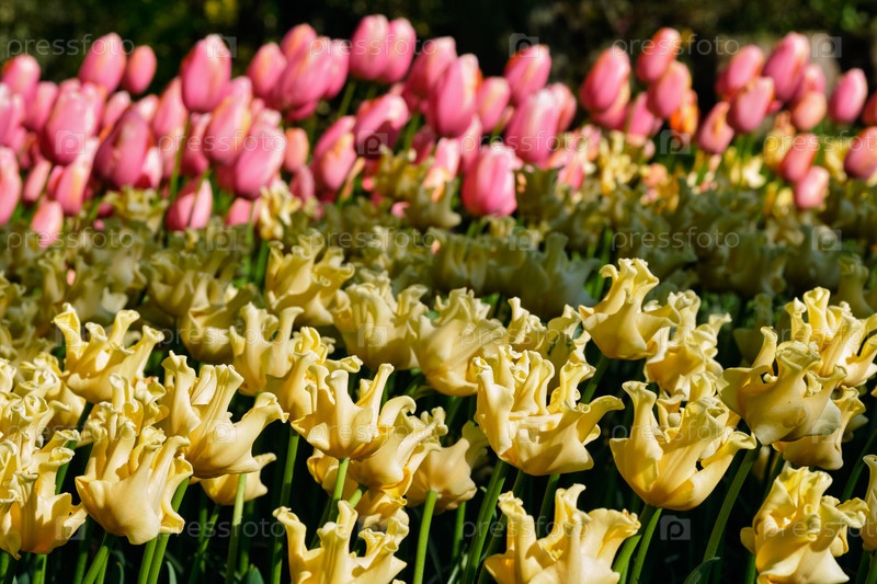 Цветение клумбы тюльпанов в цветочном саду Кеукенхофа, Нидерланды