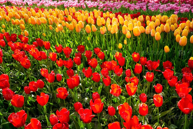 Цветение клумбы тюльпанов в цветочном саду Кеукенхофа, Нидерланды