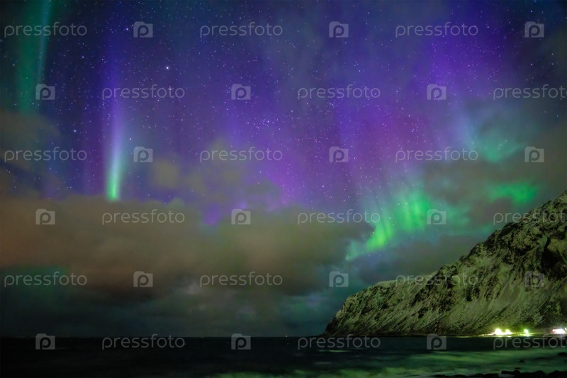 Северное сияние северной луны.Острова Лофотен, Норвегия