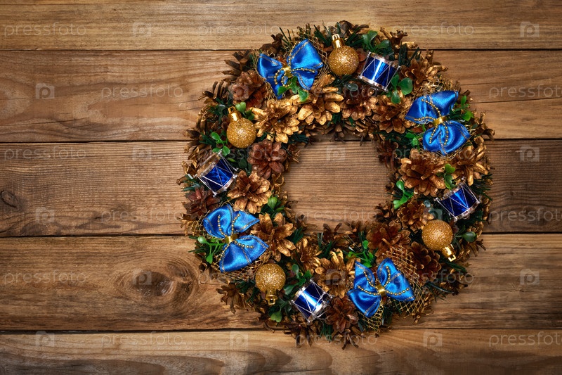 Рождественский венок на деревянном фоне