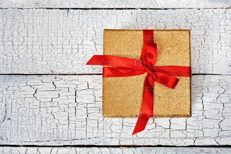 Подарочная коробка с красной лентой