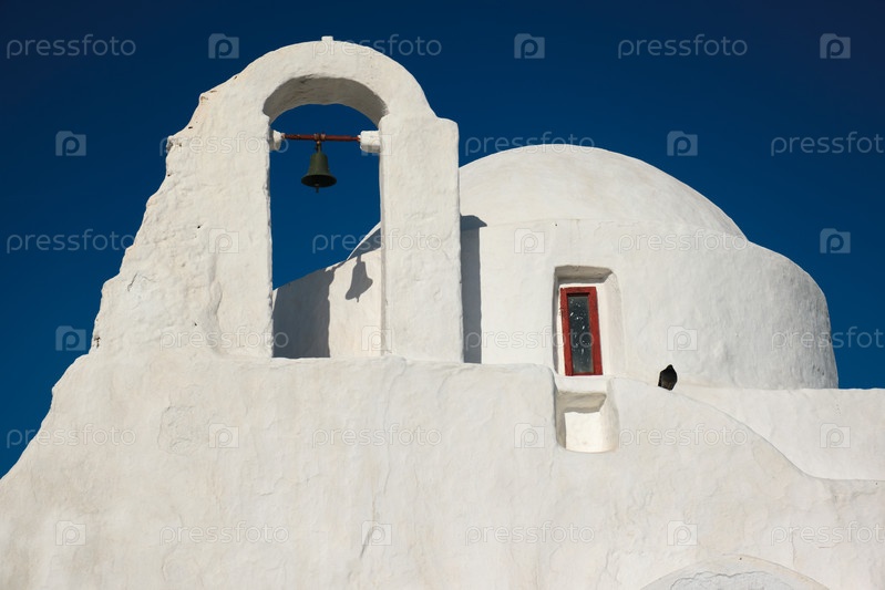 Известной туристической достопримечательностью Греции является греческая православная церковь Панагия Парапортиани в городе Хора на острове Миконос, Греция на рассвете