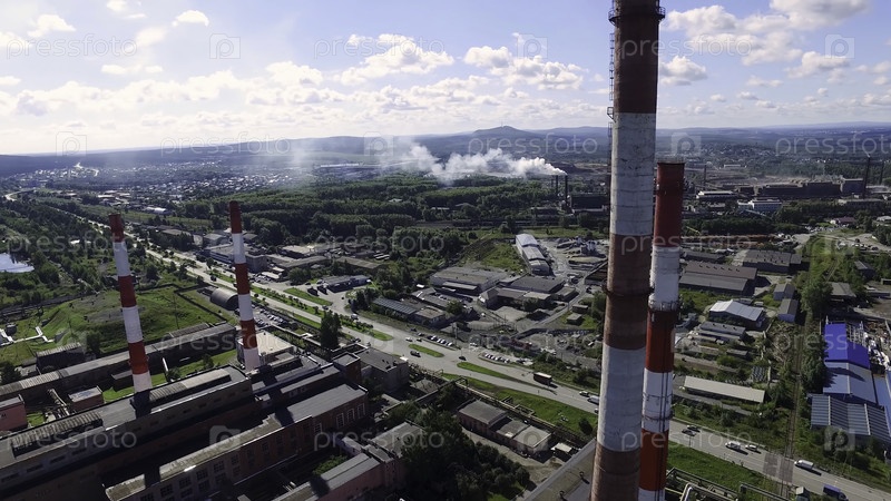 Панорамный вид промышленного ландшафта процессовых труб и установки завода. Кадр. Промышленное производство на фоне города и отдаленных лесов на горизонте. Концепция промышленности в окружающей среде и влияние на людей
