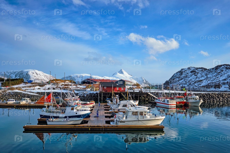 Рыболовные лодки и яхты на пирсе в Норвегии