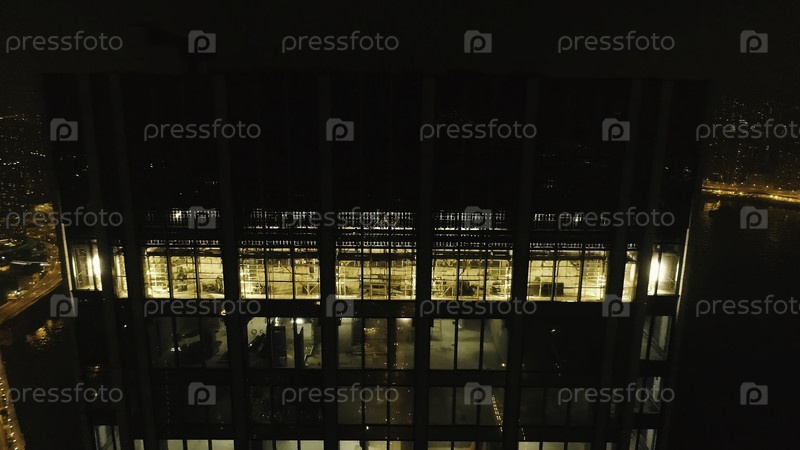 Вид на небоскреб в Гонконге ночью.Сток.Прекрасный вид высокого небоскреба в центральном деловом районе Гонконга