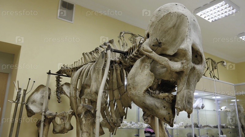 Скелет степного бизона или бизона-приска в музее