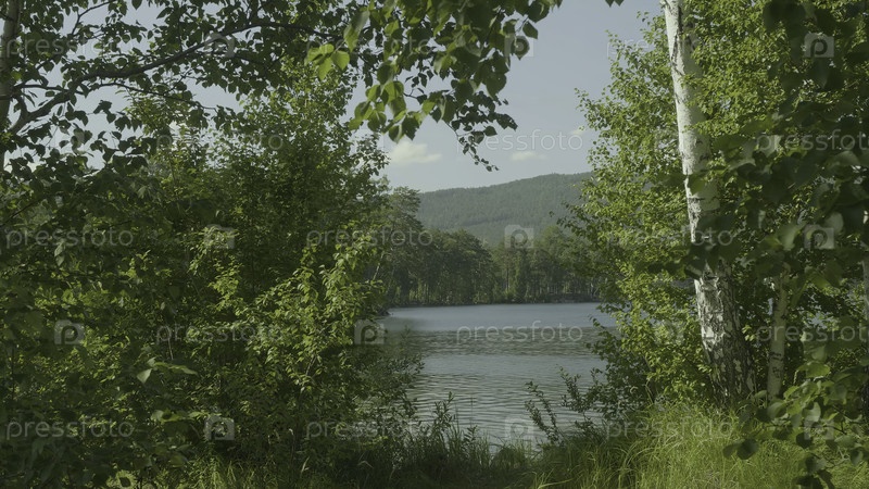 Прекрасный вид на большие зеленые деревья на озере за пределами города