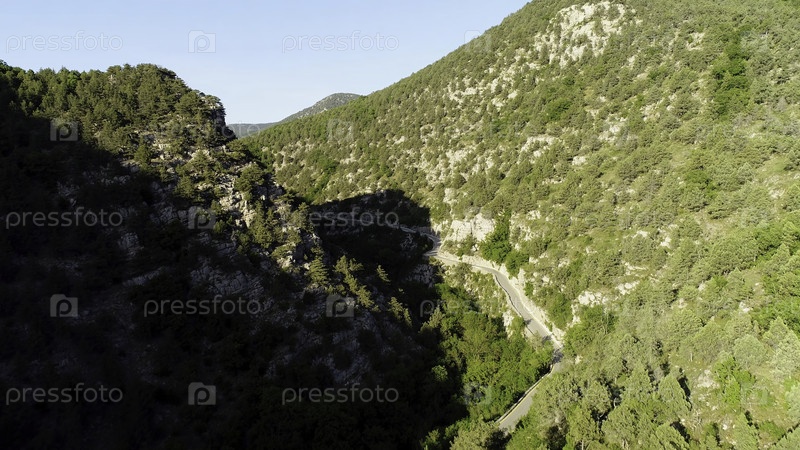 Вид с воздуха на лес в горах.Стреляй.Очисти зелёный лес в солнечный день