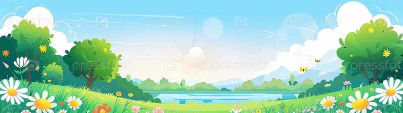 Широкоформатный фон с весенне-летним пейзажем.Пробуждение природы