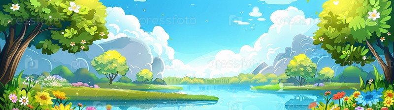 Широкоформатный фон с весенне-летним пейзажем.Пробуждение природы