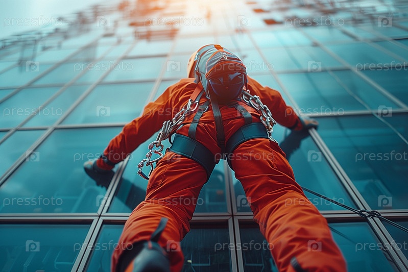 Промышленный альпинист, работающий на небоскребе