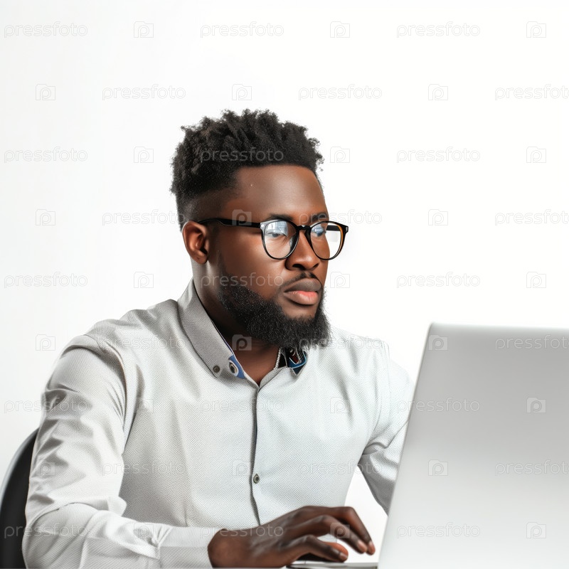 Афроамериканский программист, работающий за столом