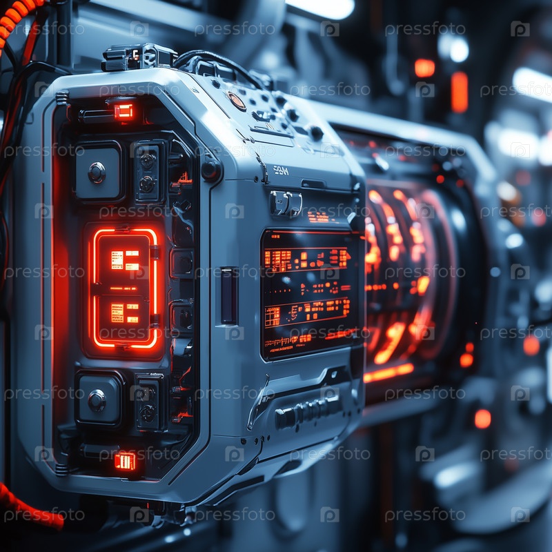 Футуристическая панель управления с светящимися неоновыми огнями в высокотехнологичной среде