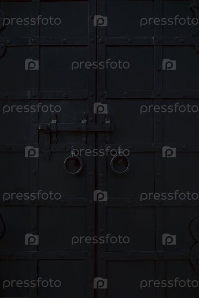 Старые черные металлические двери с кольцами