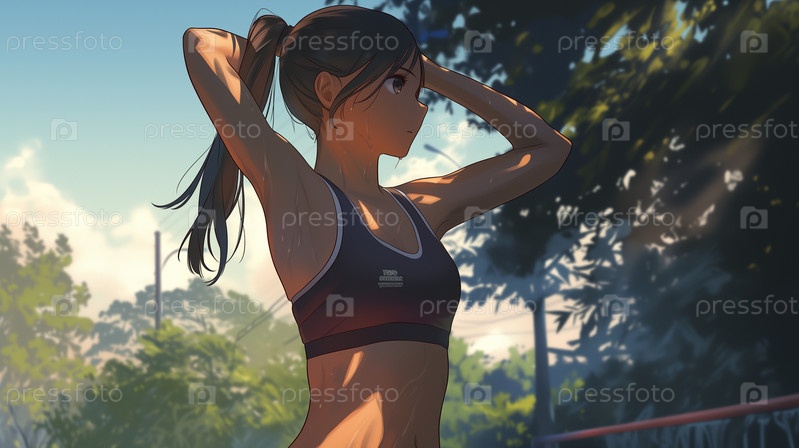 Женщина бежала в лес во время восхода солнца