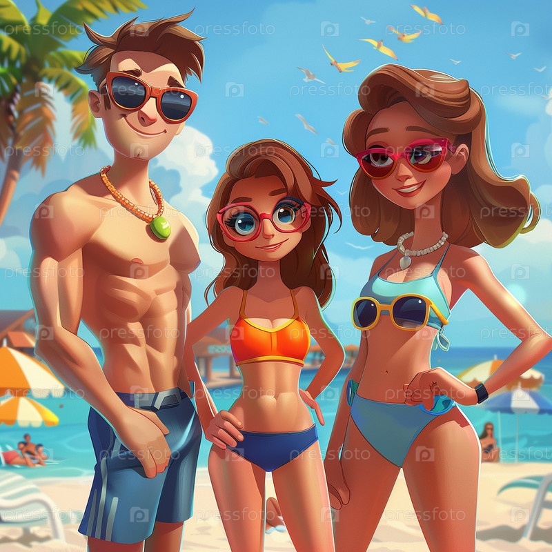 Летние пляжные командные игры в стиле мультфильмов