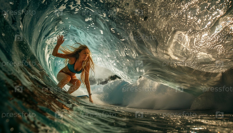 Женщина, занимающаяся серфингом внутри волны