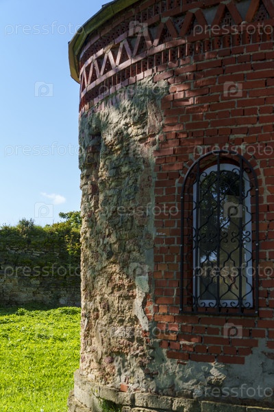 Проветриваемая кирпичная башня с арочными окнами и железными решетками