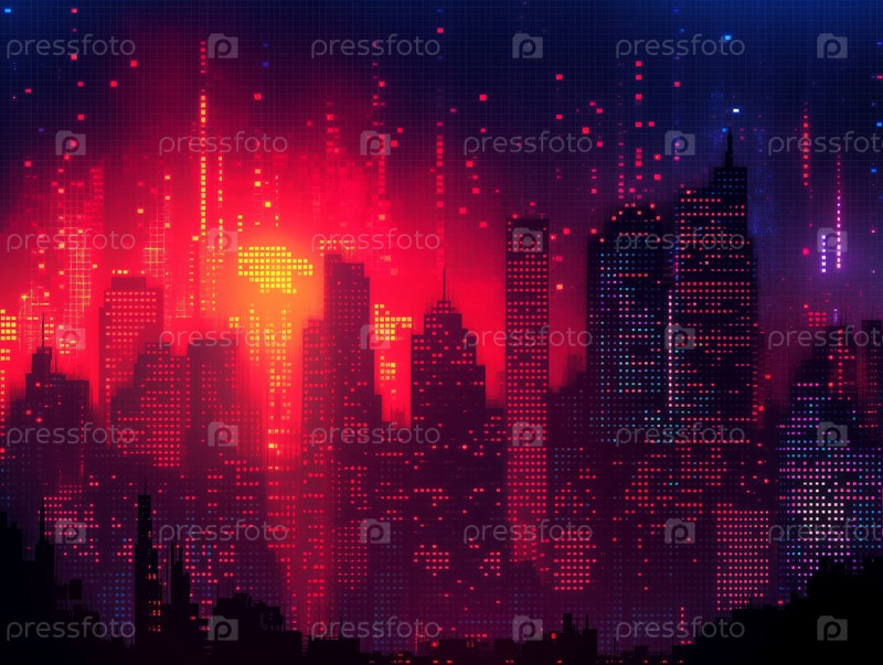 Футуристический киберпанкский городской пейзаж с светящимися неоновыми огнями