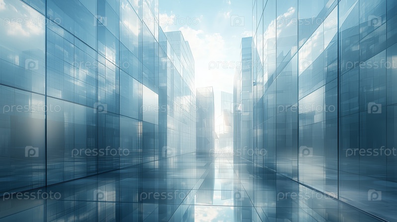 Футуристический стеклянный городской пейзаж с отражающими зданиями