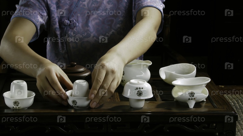 Закрытый стол для чаепития блюда и бамбук Китайская чайная церемония Японская чайная церемония