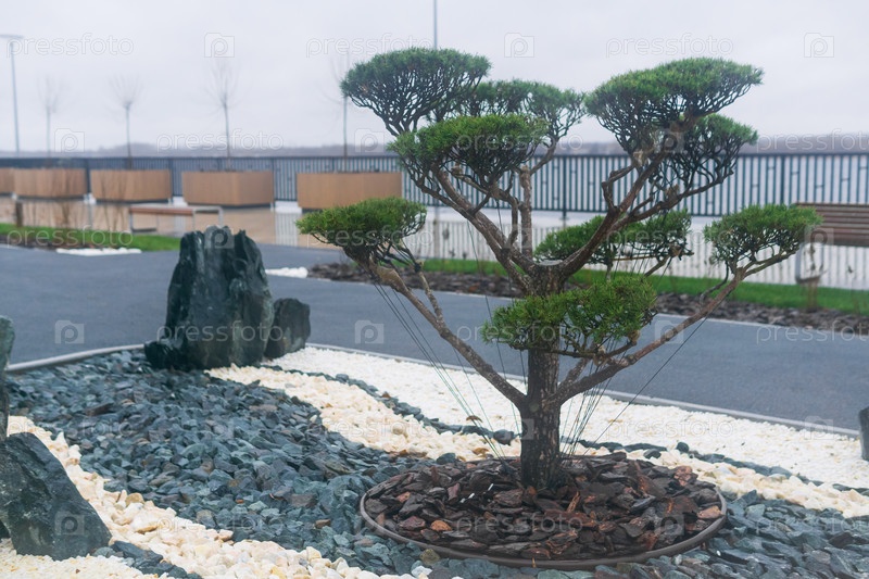 Недавно посаженное дерево бонсай на набережной