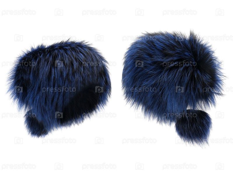 Голубая меховая шапка на изолированном белом фоне передний и задний взгляд