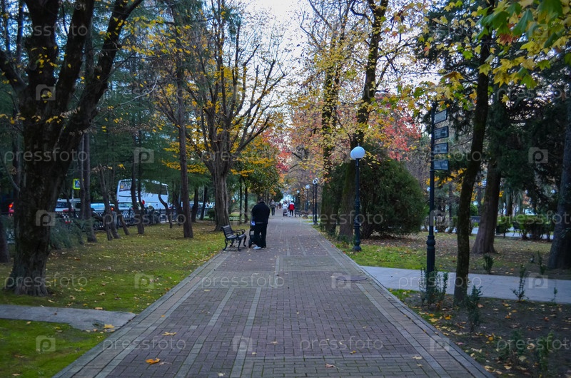 Россия, Краснодарский край, Сочи. ноябрь 2024. парк М.В. Фрунзе. пешеходная дорожка вдоль улицы