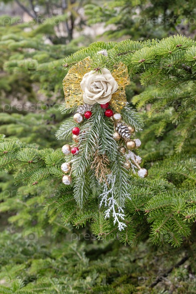 Рождественская или новогодняя игрушка висит с близкого расстояния
