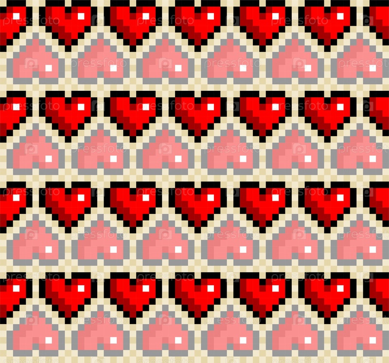 Бесшовный фон с пиксельными сердцами