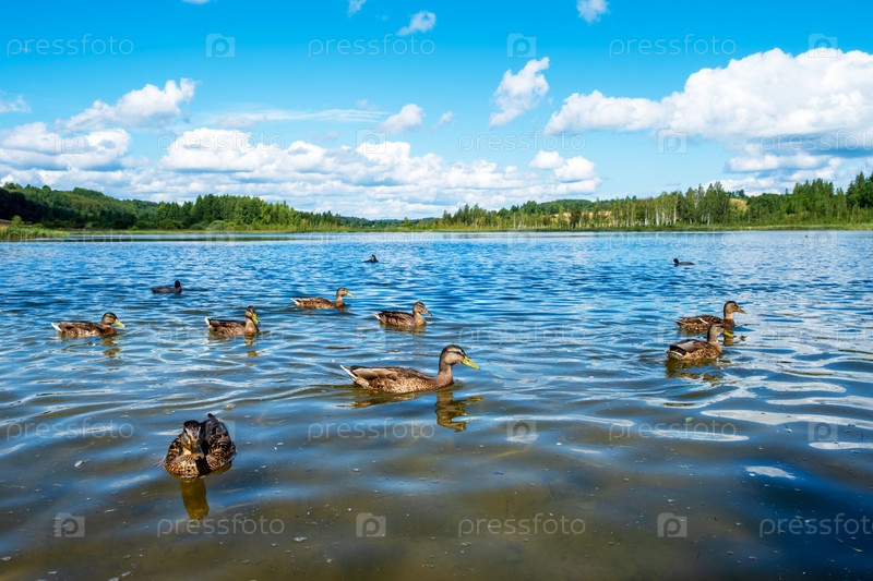 Утки плавают в озере Серена в солнечный день