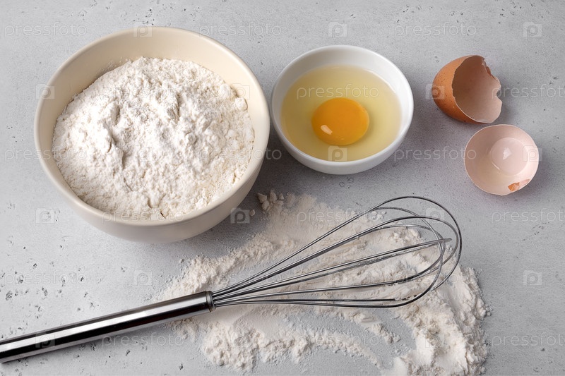 Подготовка к выпечке с мукой, яйцом и храмом