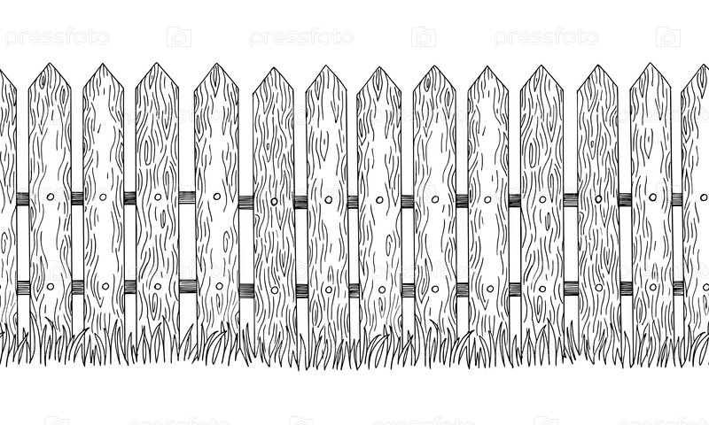 Бесшовная граница забора. Ручная иллюстрация в стиле векторного чернила. Для дизайна упаковки, карт, обложек, принтов, этикеток на продуктах и тканей